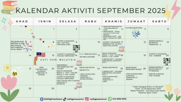 JADUAL AKTIVITI NADI BULAN SEPTEMBER 2025