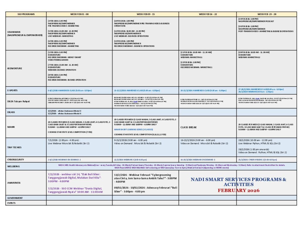 TAKWIM PERKHIDMATAN PINTAR BULAN FEBRUARI 2026