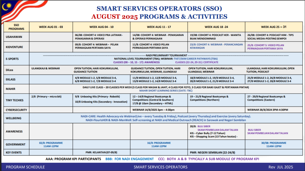 TAKWIM PERKHIDMATAN PINTAR BULAN OGOS 2025